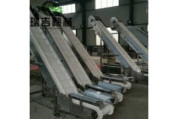 Z型爬坡皮帶輸送機是輸送機的一種,其機架形狀為Z型故而得名,輸送載體采用鏈板時,輸送鏈板沖壓成型,鏈板寬度可以根據(jù)客戶需求定制,兩側(cè)輸送鏈條節(jié)距由25.4-100可選,鏈板運行在非標(biāo)制作的導(dǎo)軌中,具有運行平穩(wěn)、負(fù)載力強、耐油等優(yōu)點,輸送載體采用皮帶時,底部采用鏈條傳動,設(shè)備寬度可以達到1500mm,裙邊式皮帶解決了漏料、撒料等弊端;機架采用板材或型材非標(biāo)制作,導(dǎo)軌采用型材制作,采用迷宮式結(jié)構(gòu)密封,確保輸送過程中細(xì)小物料無法卡滯輸送帶的關(guān)節(jié),輸送物料最小可以達到0.5mm,動力采用臥式馬達,線速度變頻調(diào)速(可選),線速度可達30米/分鐘。是塑料顆粒、沖壓零件、邊角料、小零件、緊固件等細(xì)小顆粒狀物料輸送的。